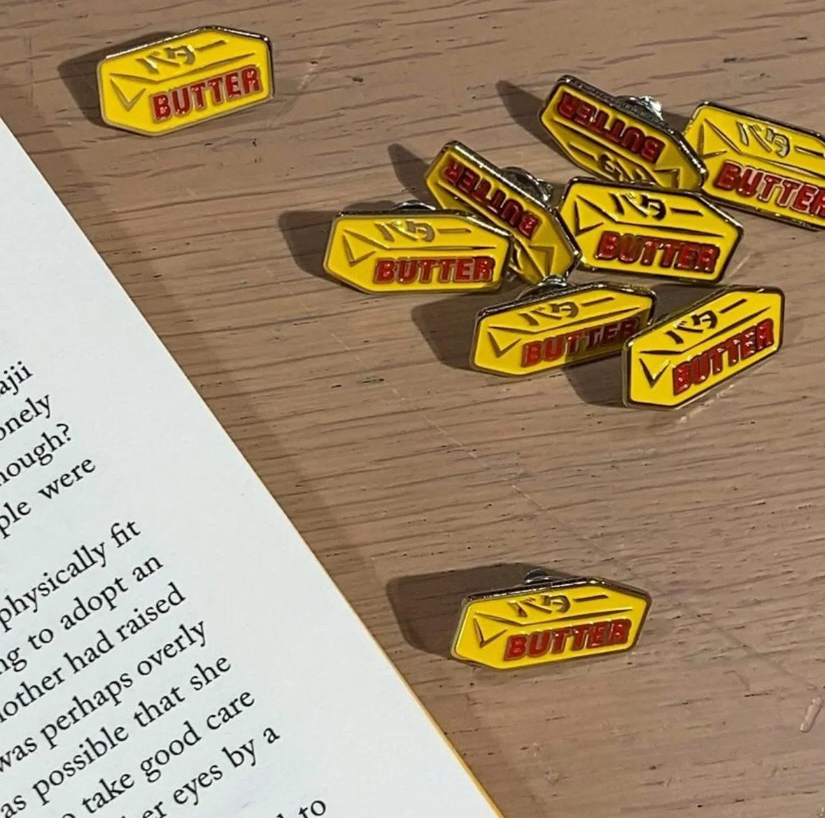 Limited Butter enamel pins, produced by Foyles. Read more here